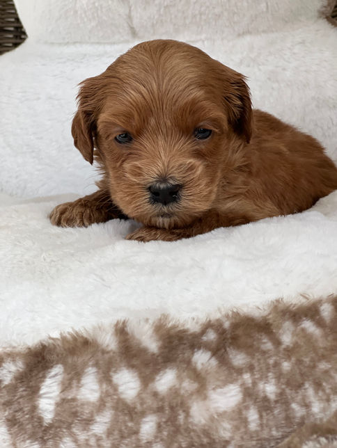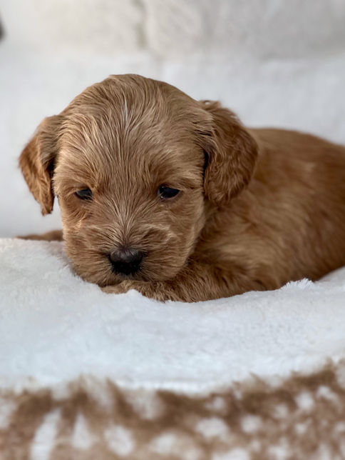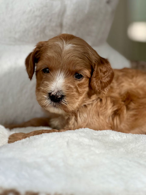 This is Nala and Chester's third litter together and Nala's retirement litter. Nala is a medium size from a mini dam, so there will be some size variation in the litter; we expect most puppies will be large minis to medium size in shades of caramel/apricot/red. Both parents have gorgeous silky fleece coats and a perfect body structure that they will pass on to their puppies. Nala is super affectionate and she has the prettiest face which she uses for great effect to let us know she is ready to be petted. Chester is a treasure; chill, sweet and an amazing companion. Their puppies will be gorgeous.